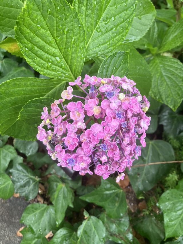 また、アジサイも咲いていました! 主催者はガクアジサイを知らず、周辺部だけ咲いているのは発育不良なのかと聞いたら、テマリ咲きの葉に毛が生えているアジサイとは違い、これはガクアジサイと言って、葉がツルツルなのだと教えていただきました!
