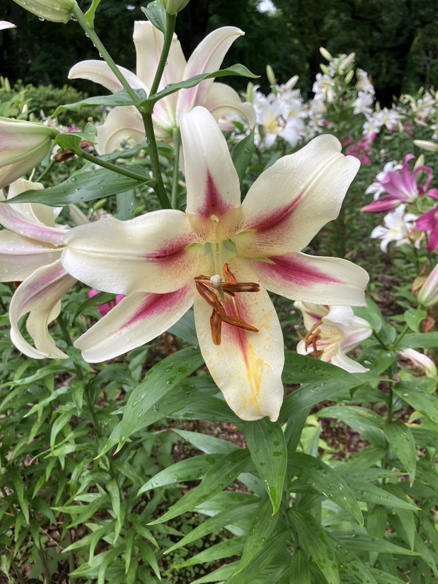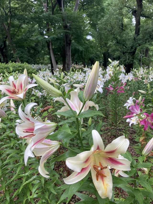 ③ ここまでで 30 分近く経ってしまったので、ユリのある雲形池へ向かいました! 大量のユリが咲き誇っていて、圧巻でした! 皆さん写真を撮りながら、池の周りの十字路を挟んだエリアを散策しました!